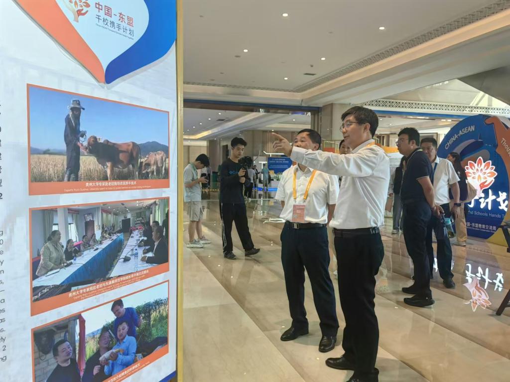 由江苏农牧科技职业学院和贵州农业职业学院共同主办的“中国-老挝农业科技培训曁中国农业高职教育“双高计划”国际合作成果展”在中国-东盟教育交流周永久会址举行,活动主题为“深化职业教育合作,促进农业安全发展”。老挝教育与体育部副部长苏利欧冬·桑达拉、中国农业农村部国际交流服务中心首席专家曹海军等领导和国内及东盟多个高校的参会代表在现场进行了成果交流。主办方还发起了成立“中国-东盟农业职业教育产教融合共同体”的倡议,旨在通过深化产教融合,促进中国与东盟国家农业职业教育的高质量发展,共同培养具有国际视野和创新能力的高素质农业人才,学校受邀成为“中国-东盟农业职业教育产教融合共同体”成员单位,现场见证了共同体的成立。