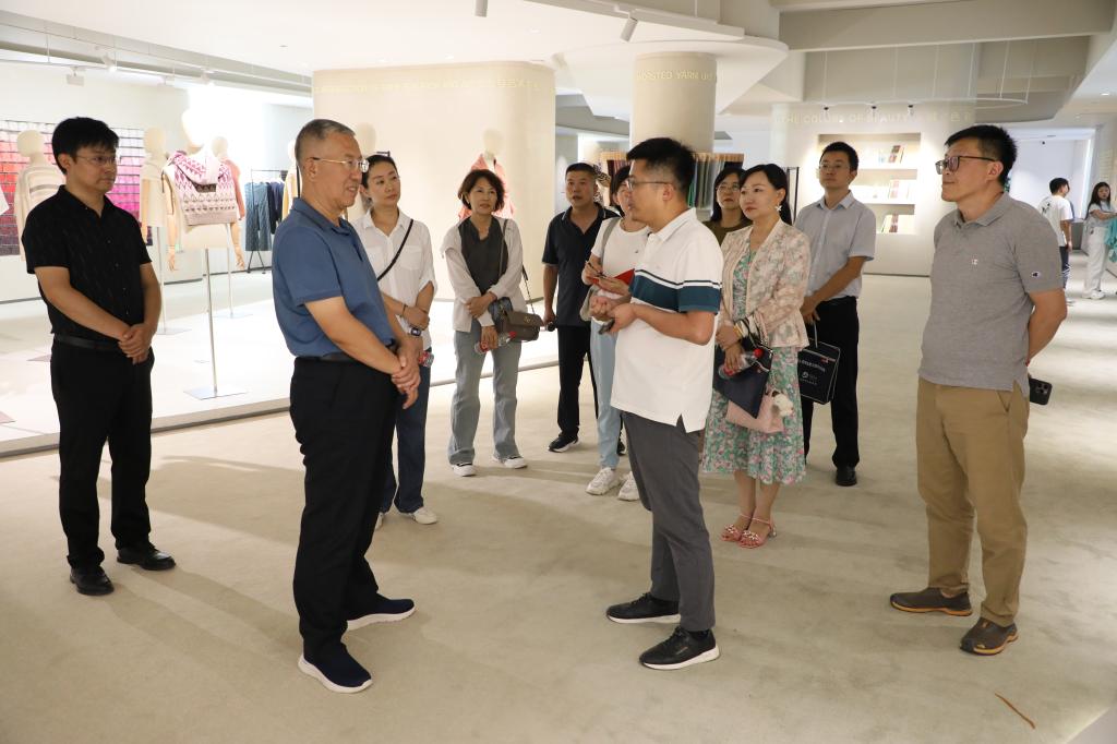 在宁夏新中绒羊绒服装有限公司,公司负责人向调研组详细介绍了服装的设计理念、市场定位以及销售渠道等情况。刘炜与现场工作人员,围绕探索新的人才培养模式、推动校企合作走向深入等具体问题进行了深入探讨。